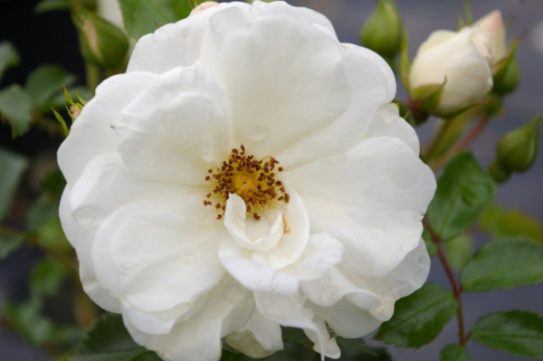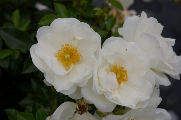 Blüte: Die Blüten sind reinweiß, reizvoll heben sich die Stempel gelb ab.